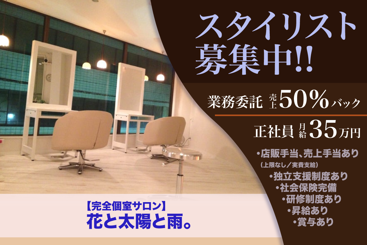 月給35万円~/歩合50%/スタイリスト/賞与あり/正社員&業務委託/駅チカ徒歩2分/flower,sun&rain(フラワーサンアンドレイン)