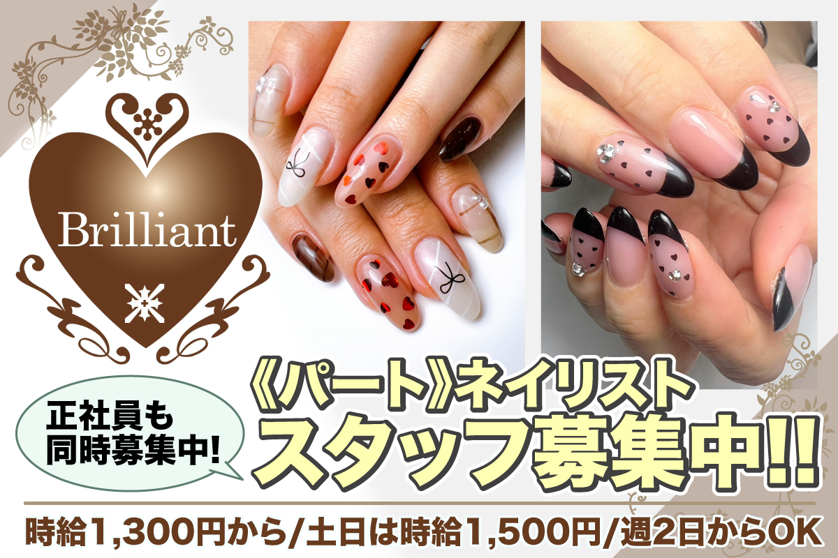 時給1,300円~/土日1,500円/ネイリスト募集中/パート/経験者/資格不問/正社員も同時募集/トータルビューティーサロン ブリリアント