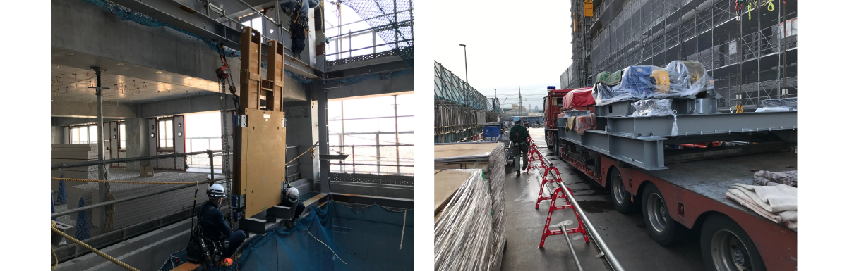 機械式駐車場の鉄骨及び機械組立の作業 |