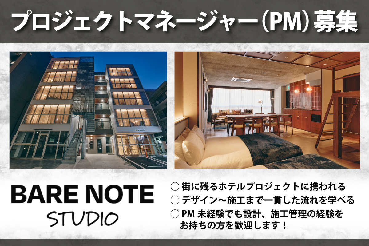 ホテル開発プロジェクトマネージャー候補 募集中/正社員/渋谷駅/神泉駅 株式会社BARE NOTE STUDIO