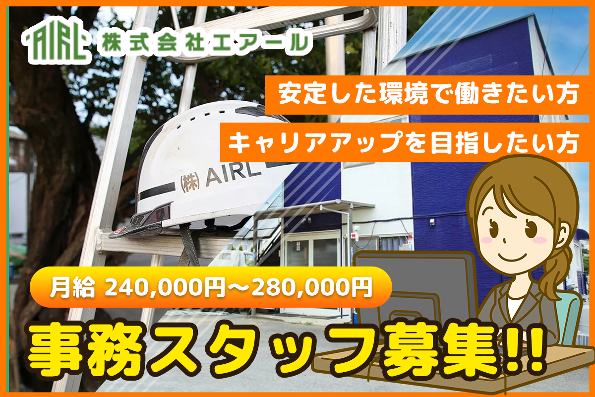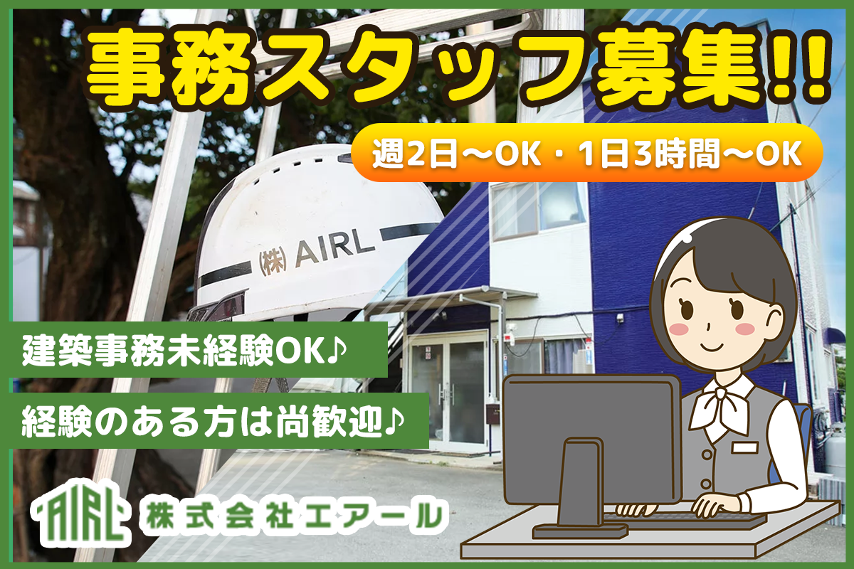 株式会社エアール / 正社員 / 事務 / 勤務日数や時間帯については応相談