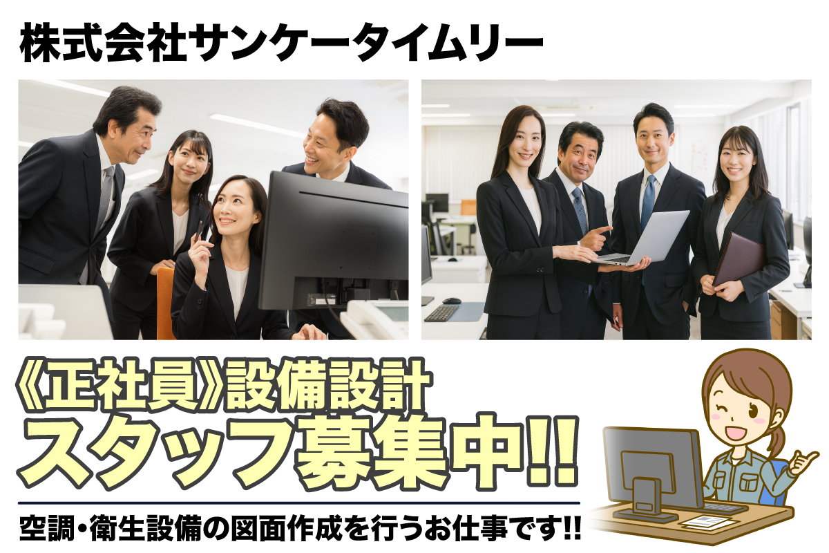 年間休日124日/定時退社OK/駅チカ徒歩5分/オフィスワーク/図面入力スタッフ募集中/土日休み/正社員/株式会社サンケータイムリー