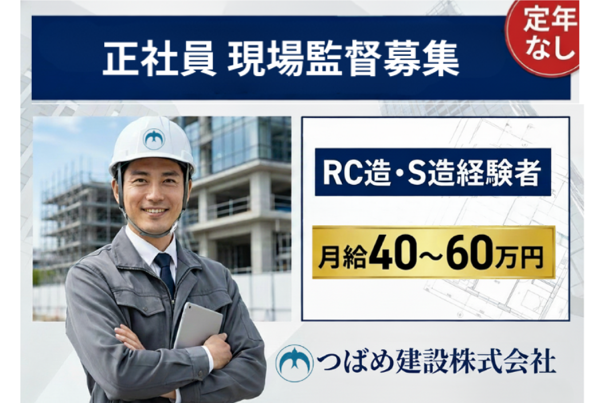 現場監督募集中 月収40万円〜60万円/年間休日127日/成果主義/経験者/定年なし 正社員/つばめ建設株式会社