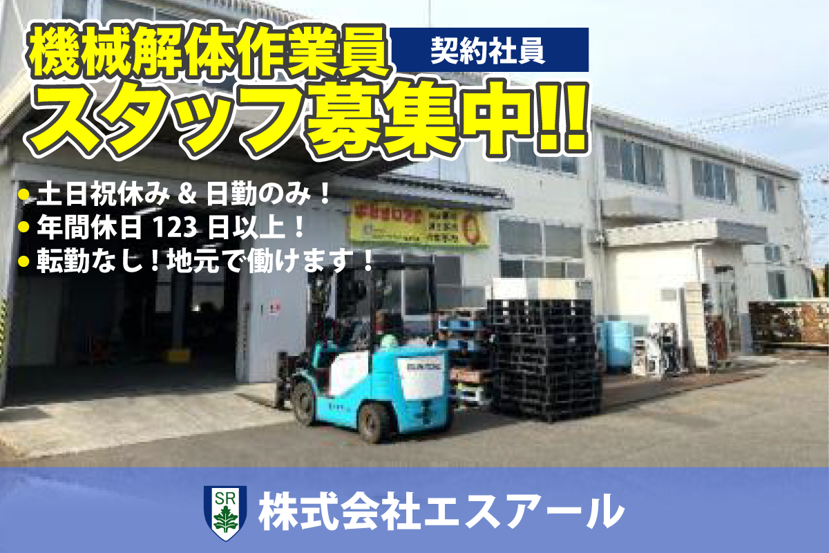 土日祝休み&日勤のみ/機械解体作業員/株式会社エスアール/契約社員