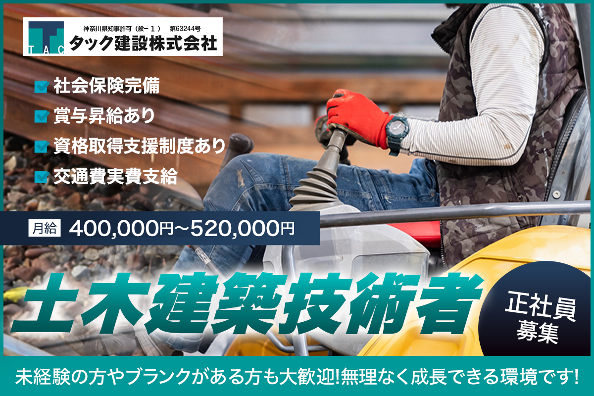 【月給400,000円~/週休2日制】タック建設株式会社 土木建築技術者募集/正社員