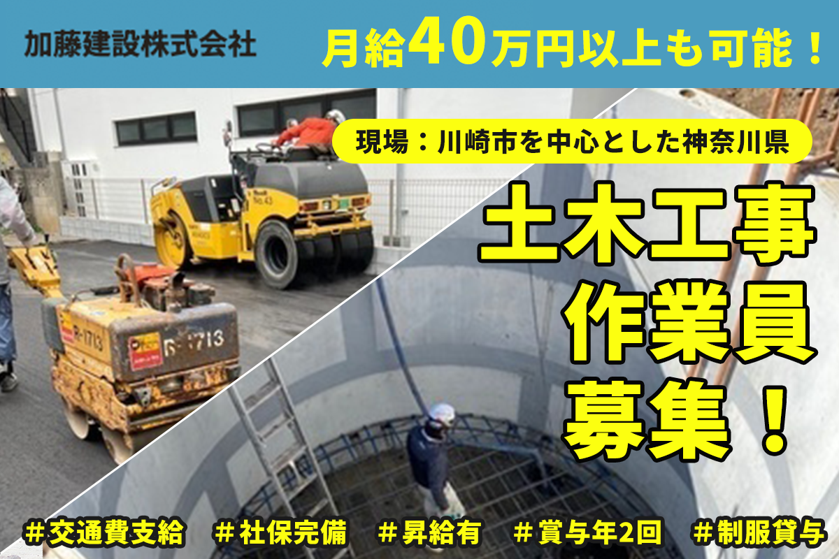 寮有り / 未経験30万以上可能 / 経験者40万以上可能 / 月給50万以上稼ぐスタッフも活躍中 / 加藤建設株式会社