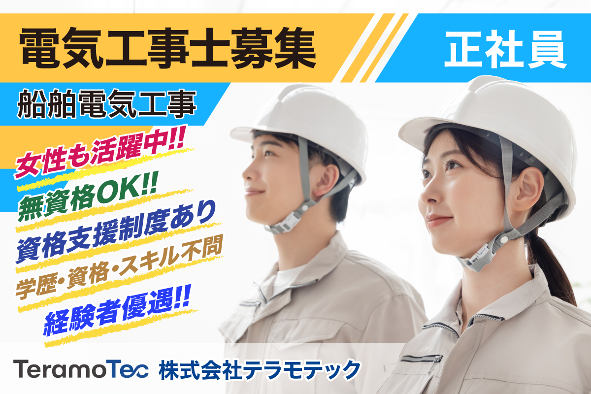 【年間休日127日/無資格OK/資格支援制度あり】株式会社テラモテック 電気工事士募集中/正社員