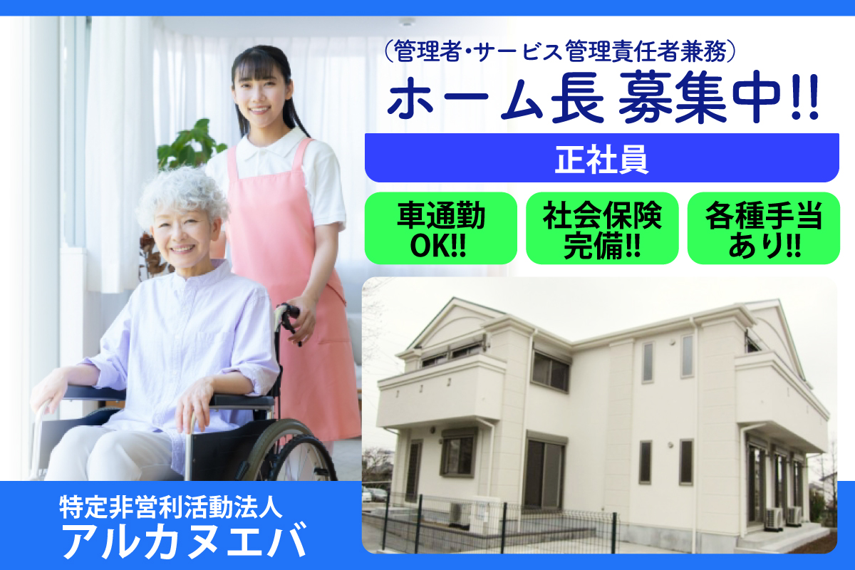 特定非営利活動法人アルカヌエバ ホーム長(管理者・サービス管理責任者兼務)募集中