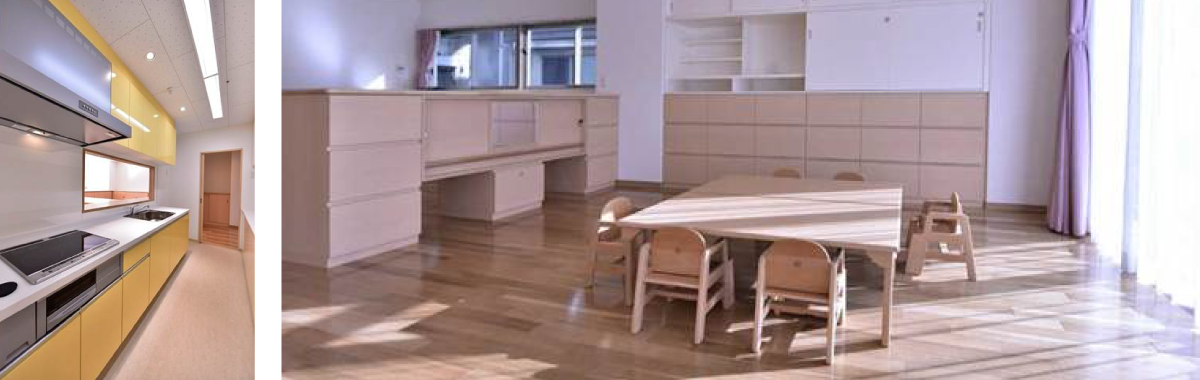 各ホームにキッチンやお風呂、玄関が完備されており、温かい雰囲気の中で日々の生活を営むことができます。