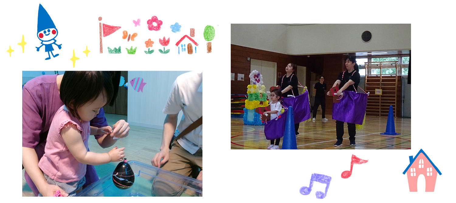 保育園で遊ぼう会:近所のまだ保育園に入園していない子どもを対象に、土曜日に保育園体験として実施。