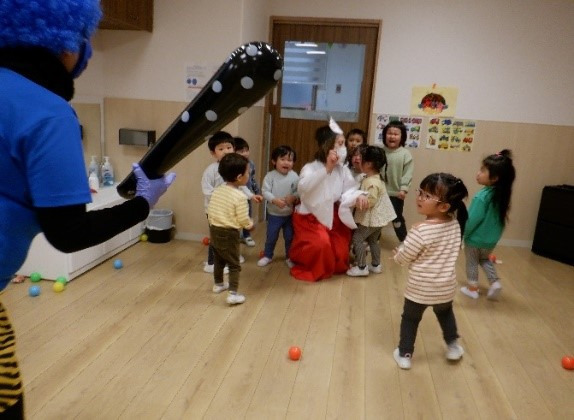 ・親子レクリエーション、夏まつり、運動会、お買い物ごっこは保護者の方にも参加してもらい、毎回好評を得ています。その他ピクニック散歩、3歳以上は遠足、七夕、クリスマス、ひなまつり、節分の豆まきは職員が鬼、園長が福の神になって子どもたちを鬼から守っています。親子レクリエーションはウォークラリーを開園の年から続けています。