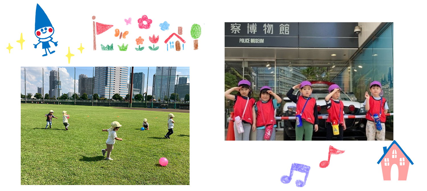 ・親子レク ・夏祭り ・夕涼み会 ・運動会 ・発表会 ・卒園式 ・電車散歩(平日の午前中) ・音楽鑑賞会 ・系列園交流 ・お店屋さんごっこ(子ども達発案)・つくだ煮の食育
