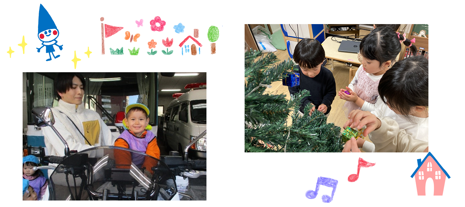 また、保護者の参加はありませんが、季節の行事やおやつ散歩、年長の夏のお楽しみ会などがあります。