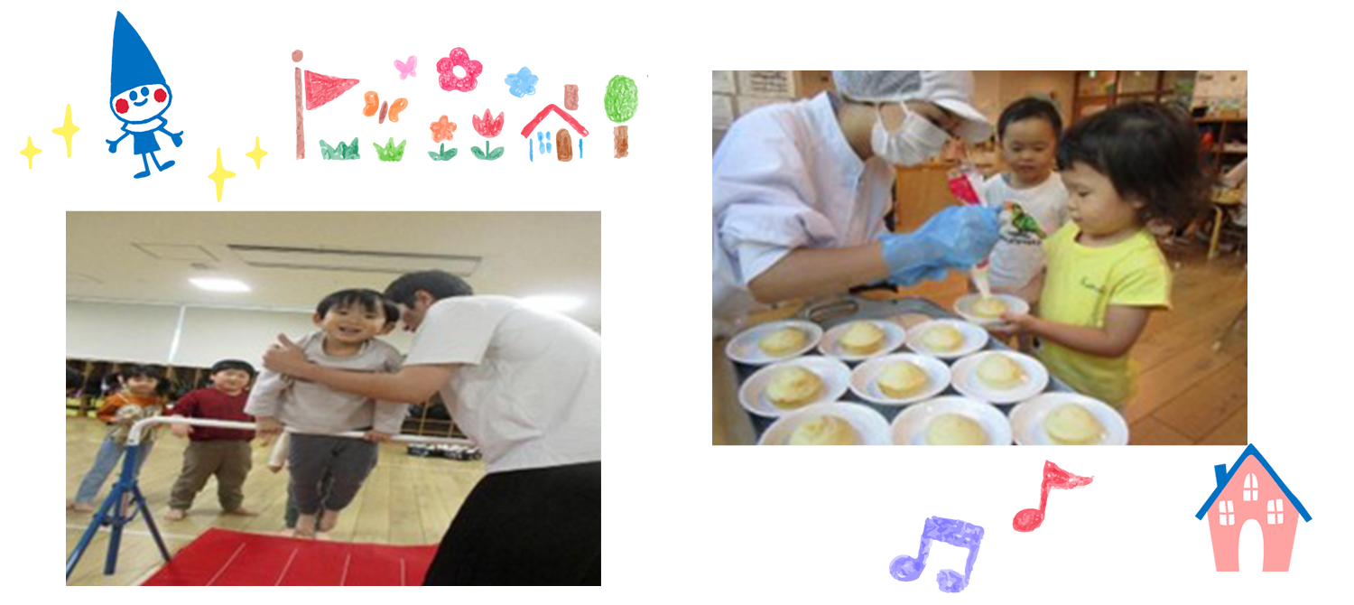 〇子どもの「やってみたい」という気持ちを経験させてあげ、積み重ねていく事で将来への選択肢を増やす事を目指しています。家庭ではやりづらい事等を優先的に経験できる場を設けつつ、身の回りにおける自分のお世話も確実に行えるように関わりを持っていきます。「できなかった」「知らなかった」が「できる」になる喜びを一緒に味わえたらと思います。また、職員も同様に『保育でやってみたい』と思った事は今、目の前にいる子ども達の成長とリスクを考慮したうえで実践できる保育園を心がけています。