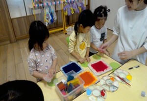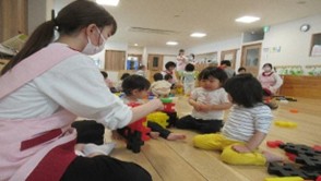 〇子どもの「やってみたい」という気持ちを経験させてあげ、積み重ねていく事で将来への選択肢を増やす事を目指しています。家庭ではやりづらい事等を優先的に経験できる場を設けつつ、身の回りにおける自分のお世話も確実に行えるように関わりを持っていきます。「できなかった」「知らなかった」が「できる」になる喜びを一緒に味わえたらと思います。また、職員も同様に『保育でやってみたい』と思った事は今、目の前にいる子ども達の成長とリスクを考慮したうえで実践できる保育園を心がけています。
