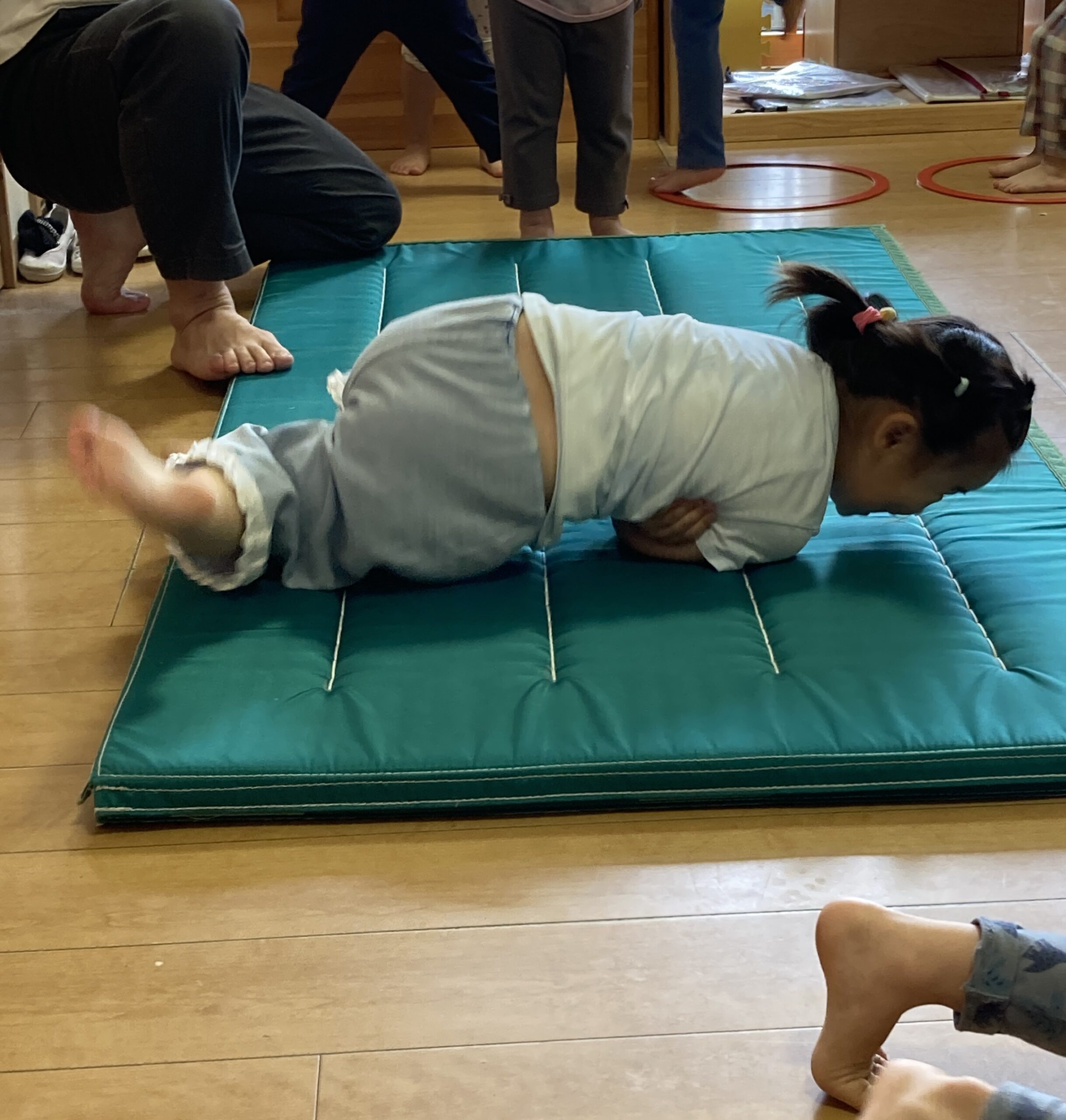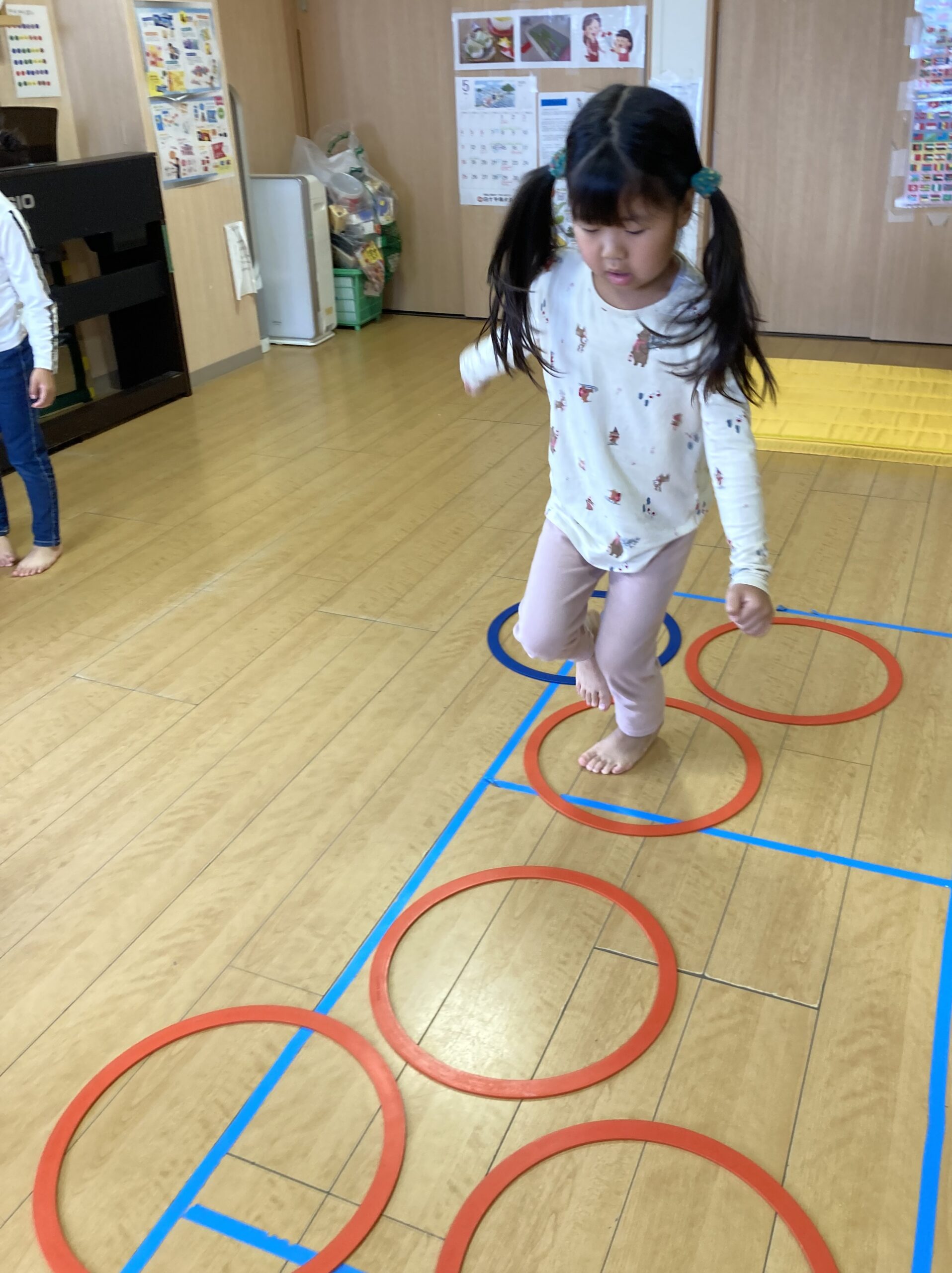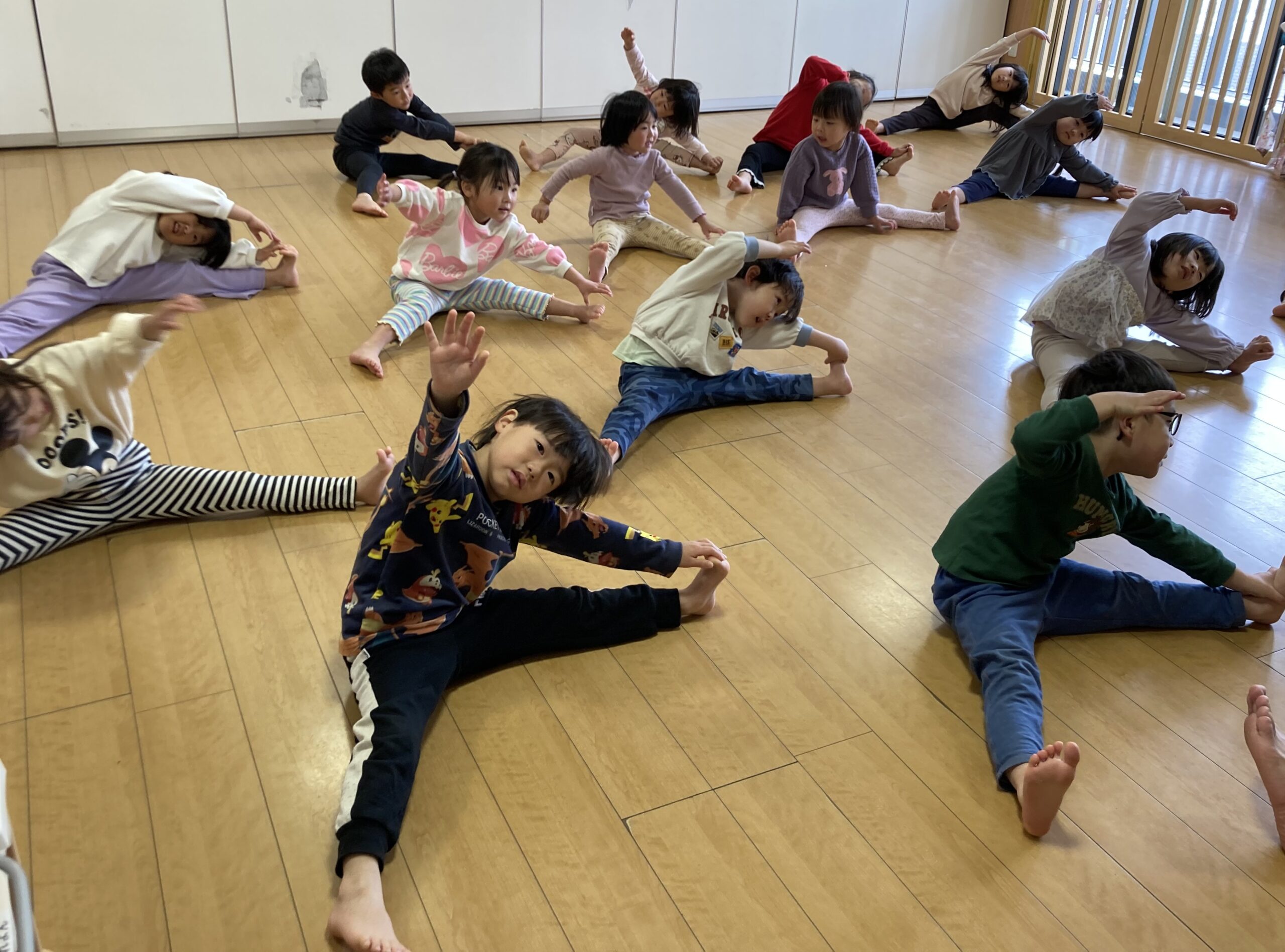 徳丸園には、運動遊びが得意な職員がいます。年間の指導計画を立てて幼児クラスは週1回決まった曜日に乳児クラスは不定期に、45分間運動遊びの時間を設けています。この運動遊びは昨年から行っていますが、転ぶことが少なくなり擦り傷などの怪我が減っています。体の使い方が上手になり体幹が鍛えられているようです。子どもたちは、運動遊びの時間を楽しみにしています。ギターが得意な職員もいて、クラスや卒園式で演奏してくれています。子どもたちは職員の演奏を楽しみにしていて、演奏が始まると曲にあわせて体を揺らしリズムを取ってノリノリで聞いています。音感やリズム感が培われているようです。