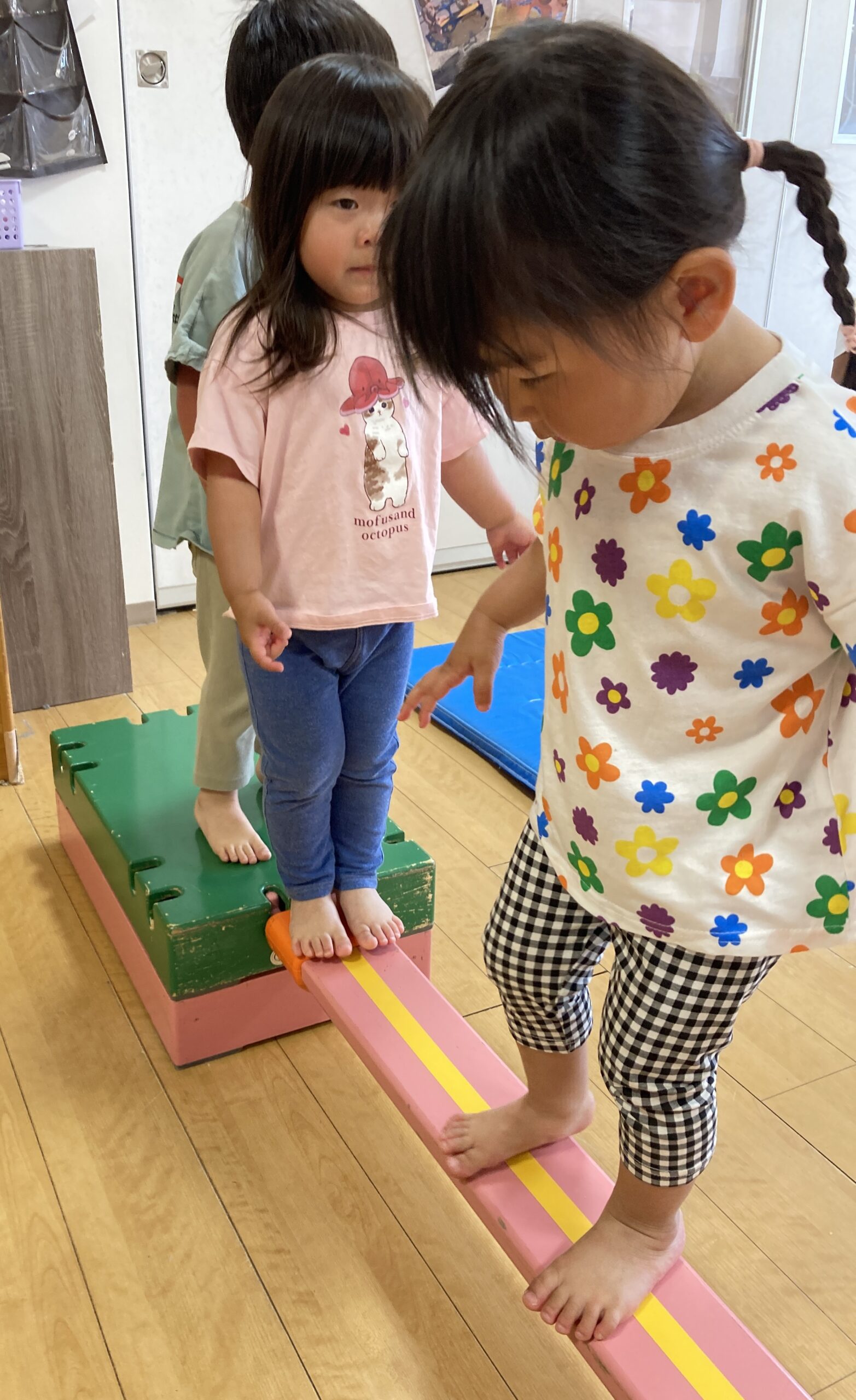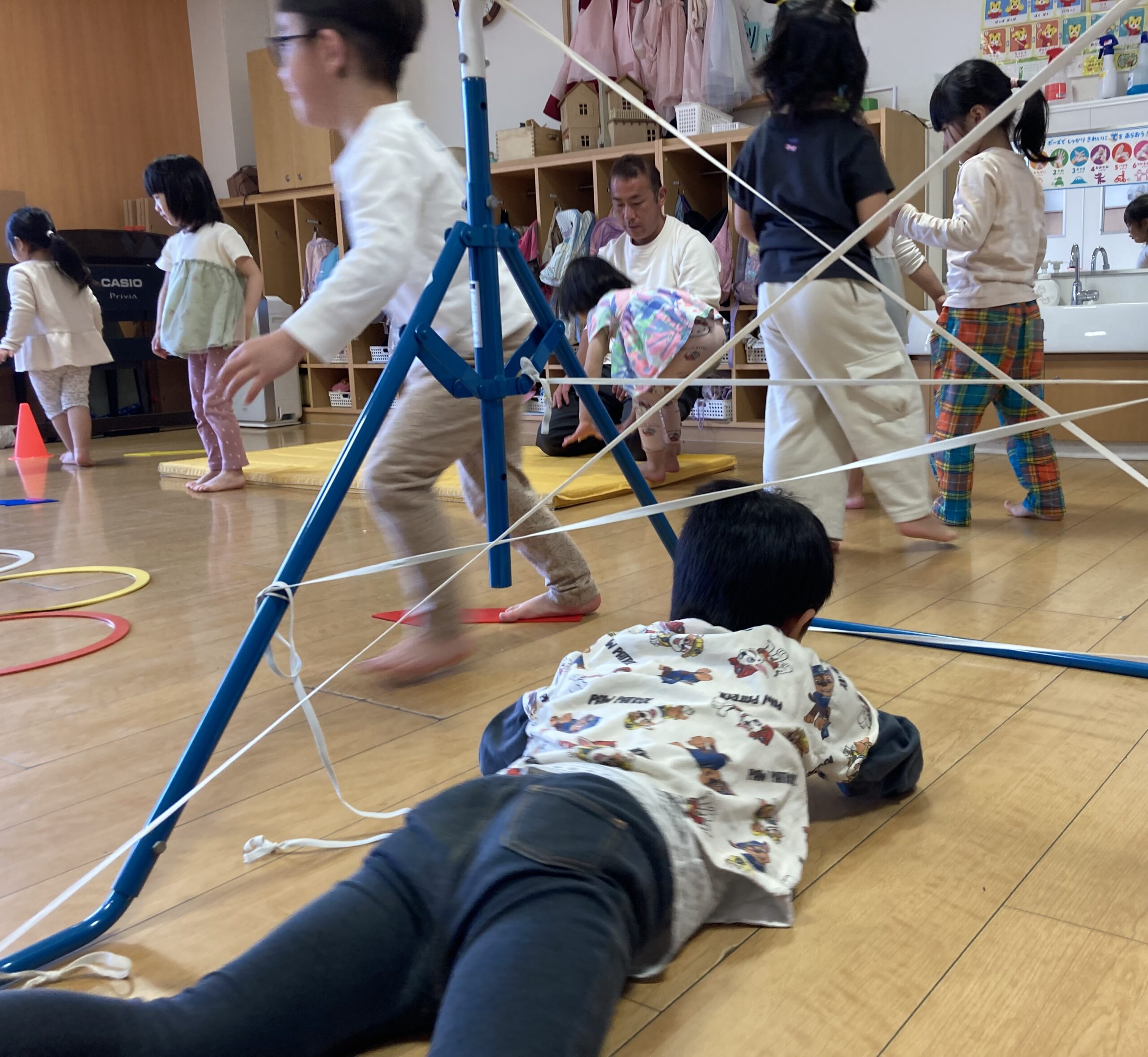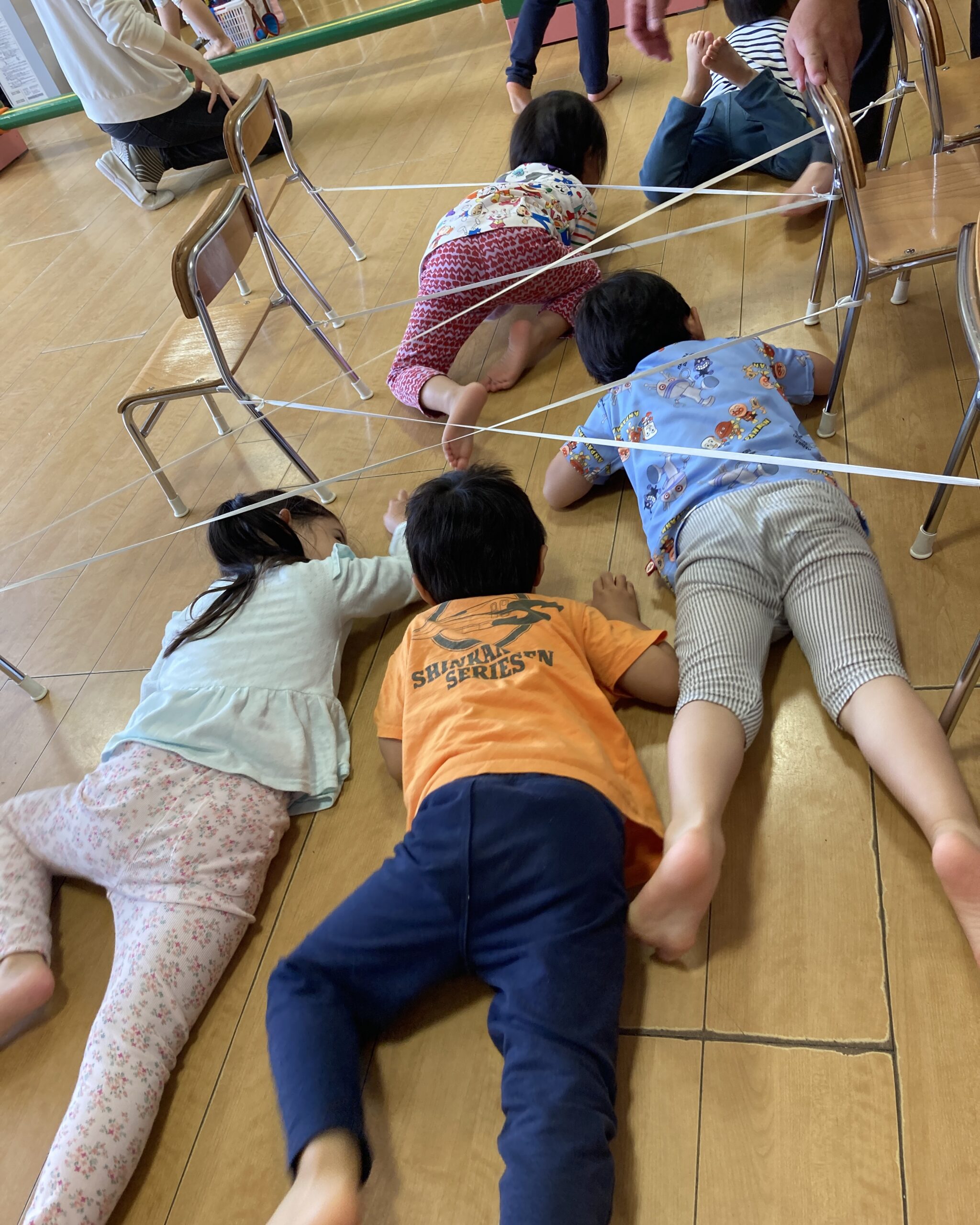 徳丸園には、運動遊びが得意な職員がいます。年間の指導計画を立てて幼児クラスは週1回決まった曜日に乳児クラスは不定期に、45分間運動遊びの時間を設けています。この運動遊びは昨年から行っていますが、転ぶことが少なくなり擦り傷などの怪我が減っています。体の使い方が上手になり体幹が鍛えられているようです。子どもたちは、運動遊びの時間を楽しみにしています。ギターが得意な職員もいて、クラスや卒園式で演奏してくれています。子どもたちは職員の演奏を楽しみにしていて、演奏が始まると曲にあわせて体を揺らしリズムを取ってノリノリで聞いています。音感やリズム感が培われているようです。