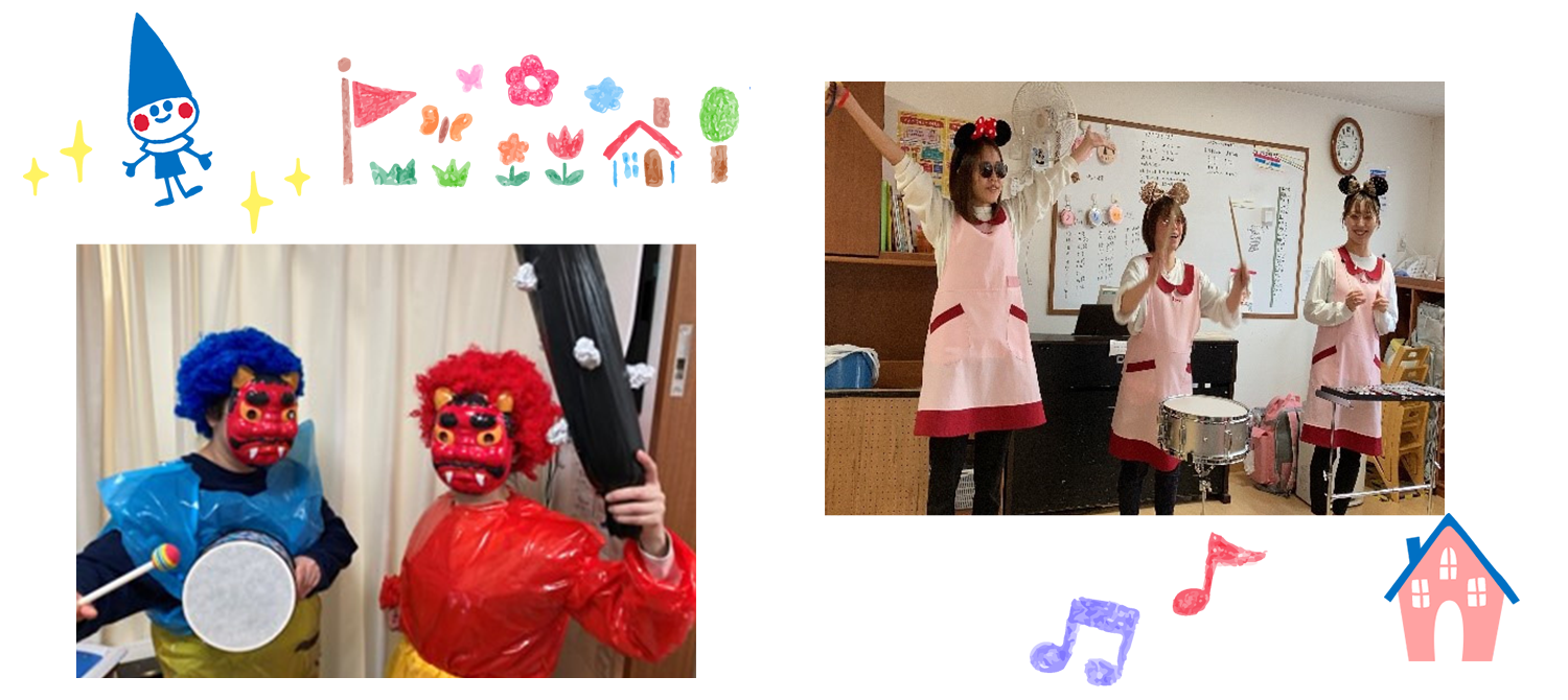 〇令和7年度に新しく取り組もうと考えているイベントや園の取り組み コロナ禍前のように夏祭りに親子で参加してもらい、近隣の子ども達もお招きして盆踊りや手作り神輿を楽しみます。先生達は浴衣を着ます。