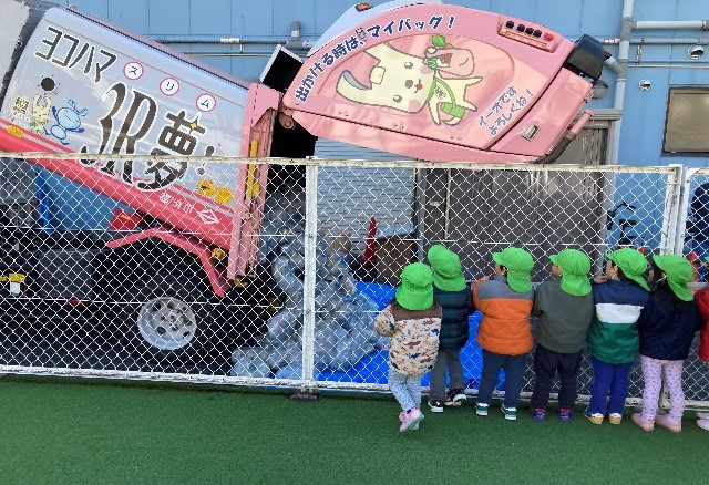 近隣の消防署や警察署を見学したり、ピンクのごみ収集車で収集体験もしました。