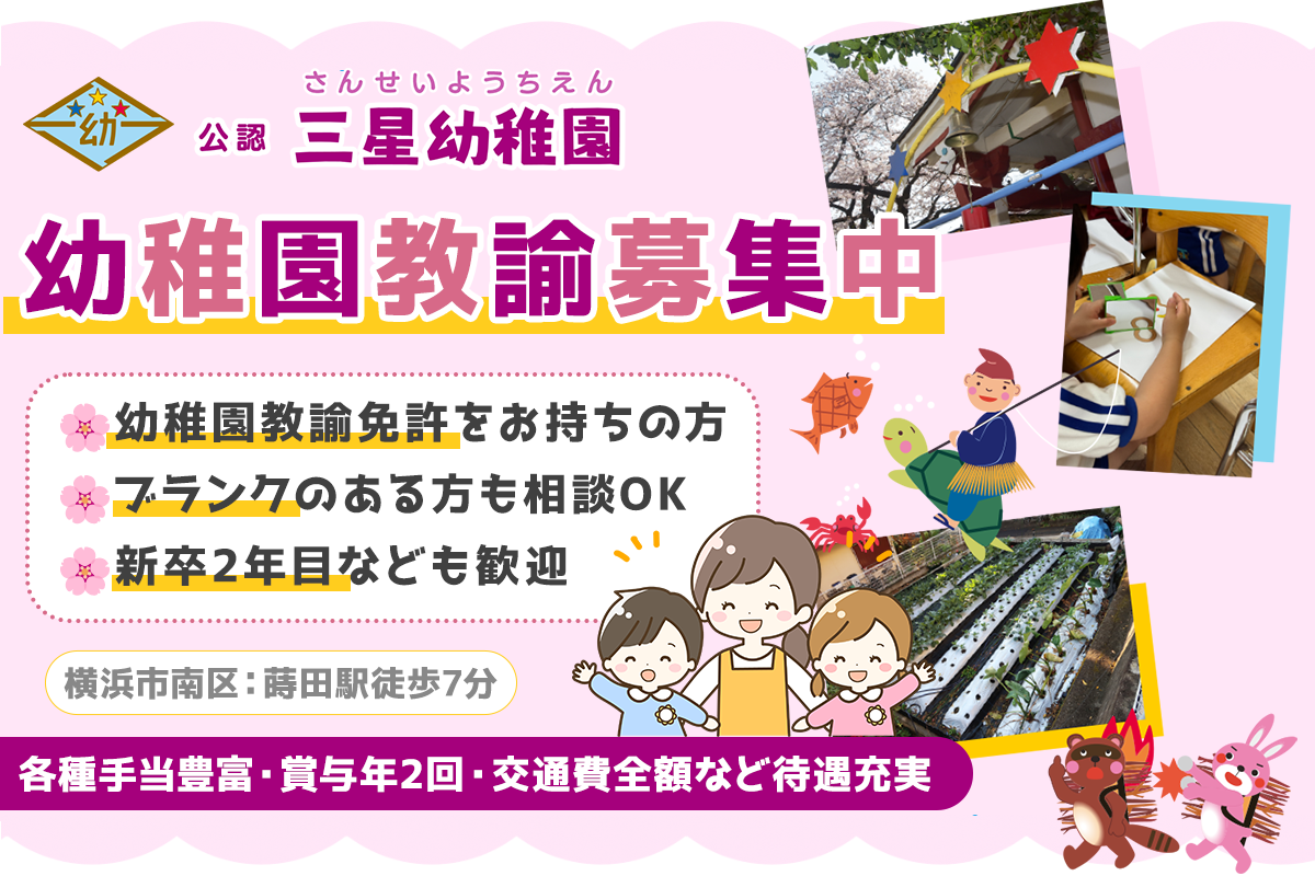学校法人もんえい学園 三星幼稚園 幼稚園教諭スタッフ募集中