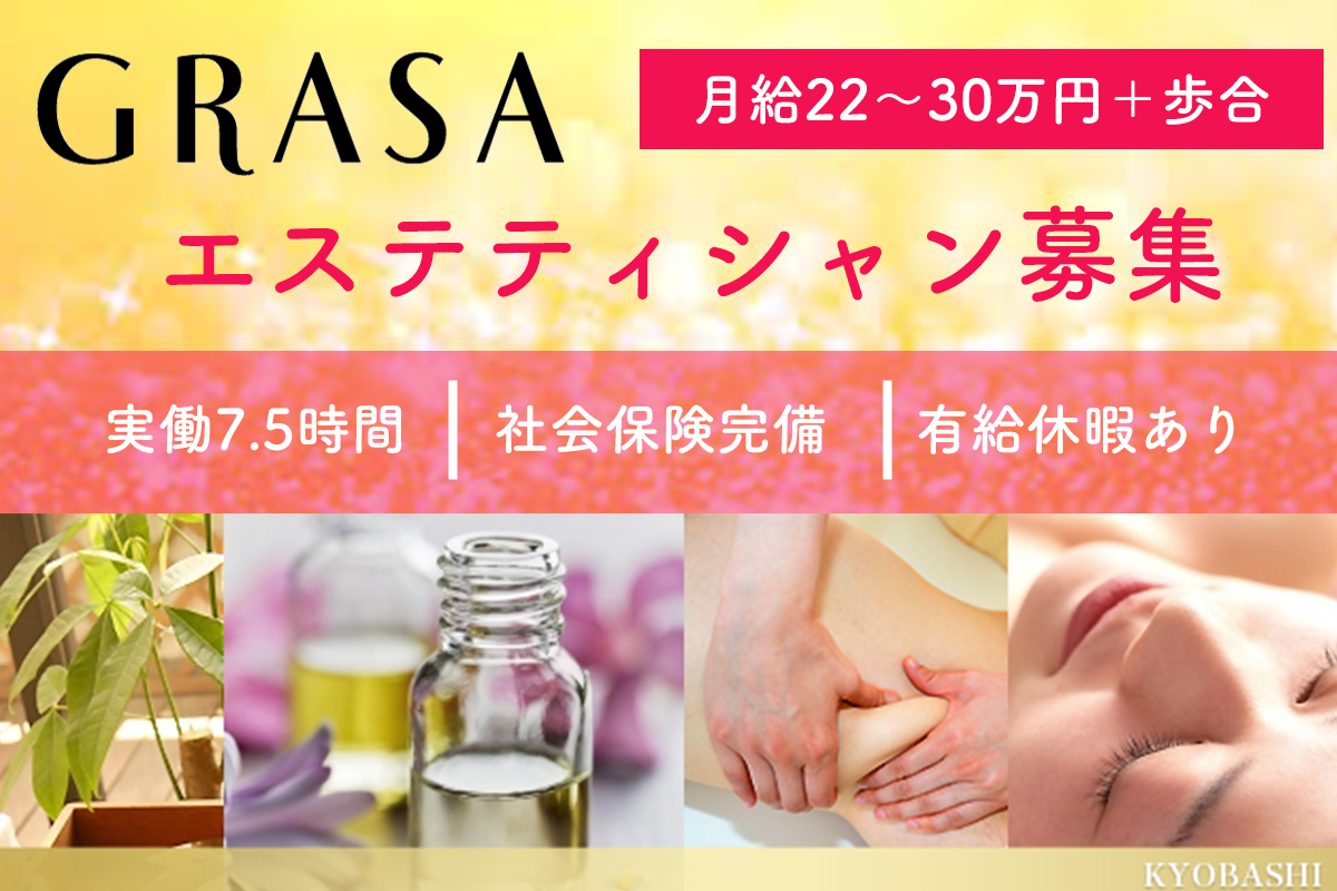 【京橋駅】≪未経験OK≫≪経験者前職給与保証≫≪完全週休2日制≫≪有給取得100%≫≪社会保険完備≫≪産休育休取得実績あり≫マザーズ手当やスキンケア支給制度の嬉しい制度がたくさん!全国展開している人気