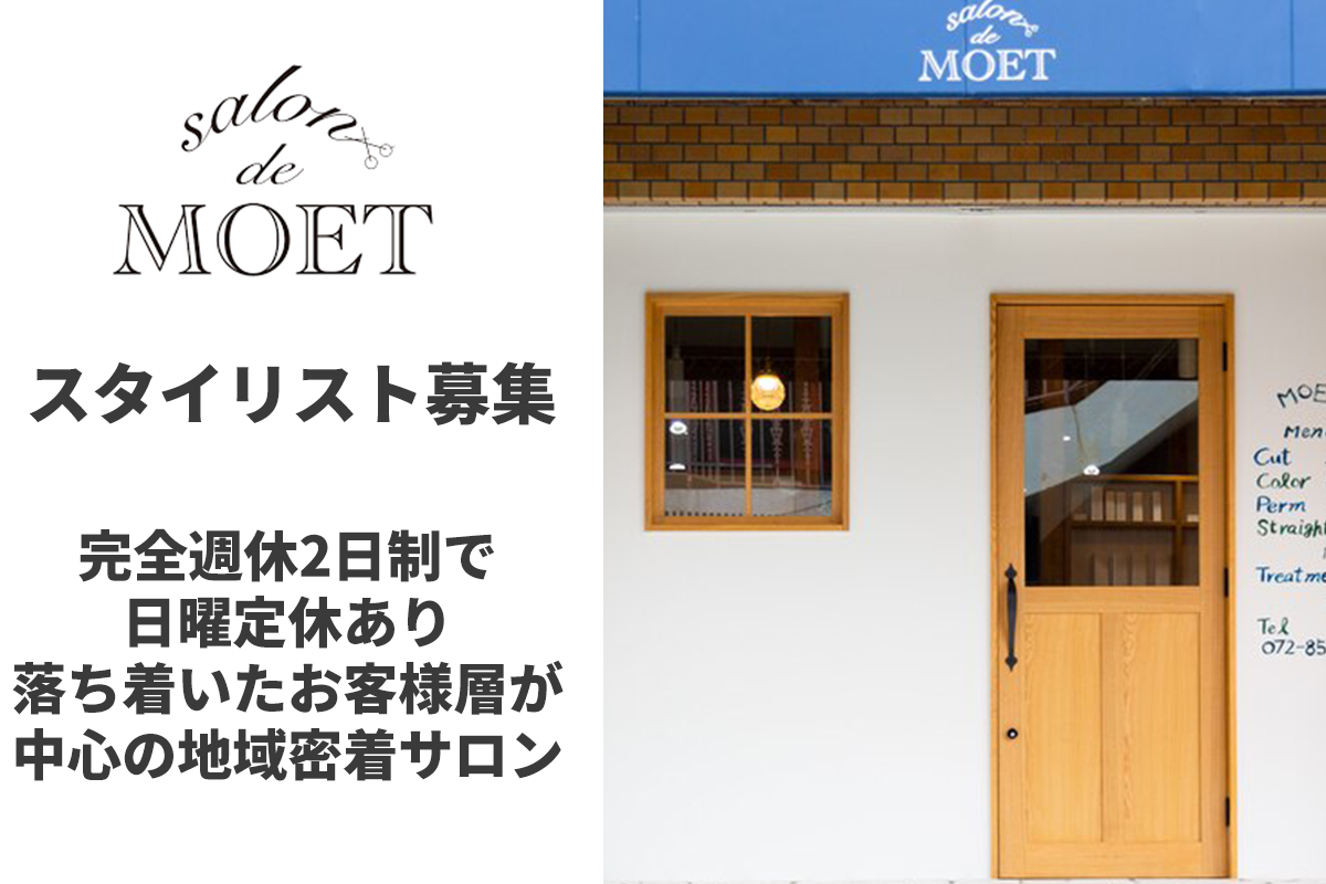 樟葉エリア 完全週休2日制で日曜定休あり 落ち着いたお客様層が中心の地域密着サロン salon de MOETでスタイリスト募集
