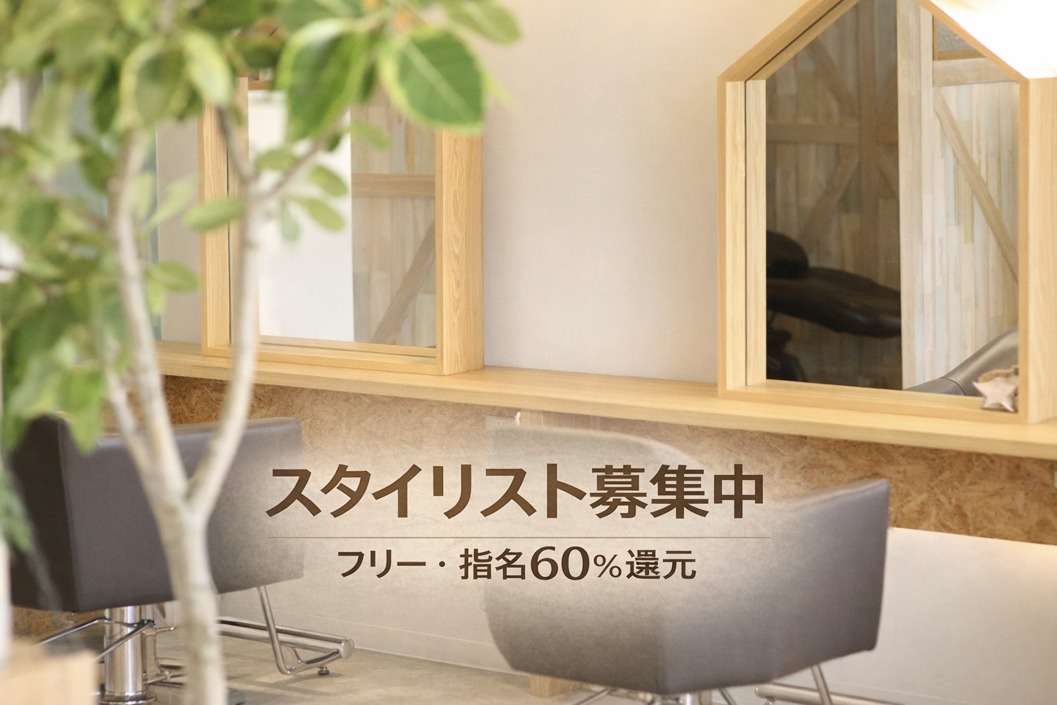 個室、半個室の落ち着いた雰囲気の髪質改善特化サロン。高単価、高還元率で高収入を目指せます!ライフスタイルに合わせ、のびのび勤務していただくことが可能です!