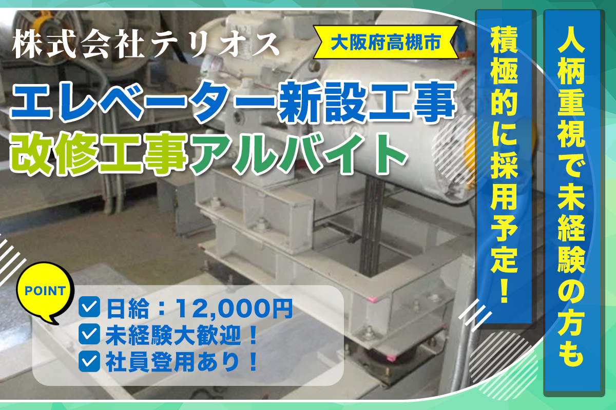 【アルバイト募集】株式会社テリオス エレベーター新設工事・改修工事技術者スタッフ