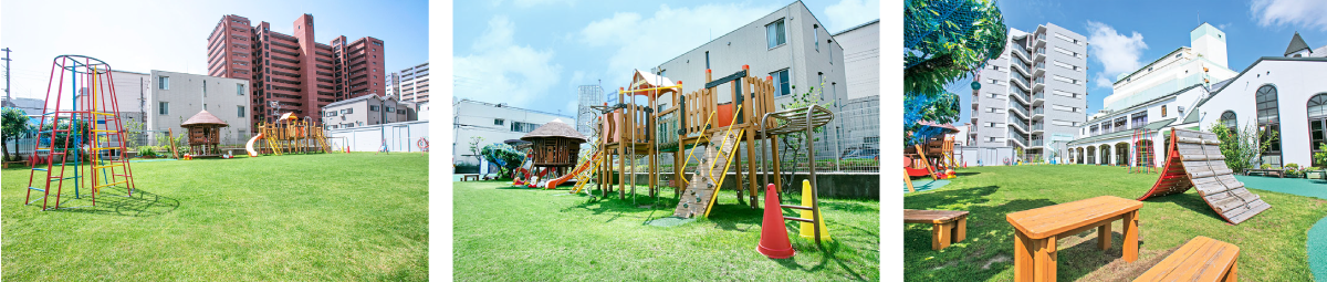 芝生の園庭や四季を感じられる環境が整っており、