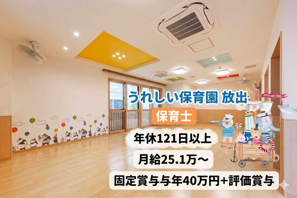 保育士(年休121日以上/月給25.1万~/固定賞与年40万円+評価賞与)