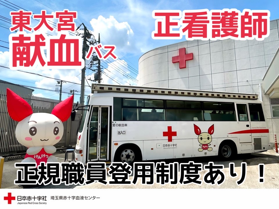 正看護師/熊谷/献血バス採血スタッフ/賞与あり/駐車場完備/埼玉県赤十字血液センター/契約社員