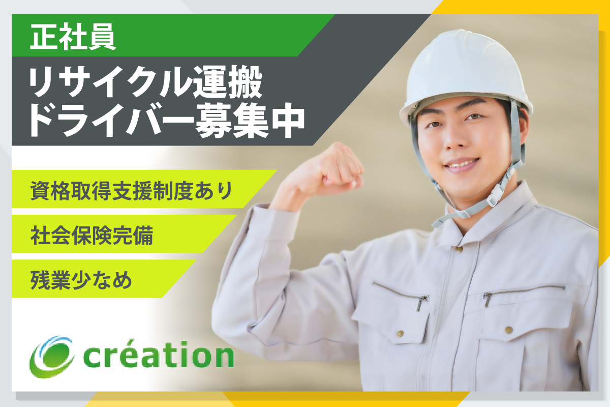 【前給制度あり】お財布に優しい即収入サポート/株式会社クレアシオン/リサイクル運搬ドライバー募集中/正社員